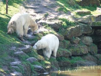 Neben den Eisbären leben die Braunbären zusammen mit den Polarwölfen. Polarwölfe ruhten, aber zwei jungen Braunbären waren sehr aktiv. Sie kämpften mit einander.Alongside the polar bears, the brown bears live together with the arctic wolves. […]