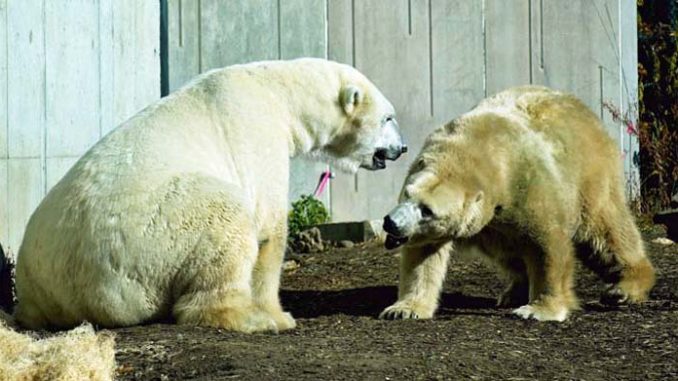 3. Ältere Bärendamen klären mit jungen Eisbären erstmal die Rangordnung. Danach haben wir aber auch oft erlebt, dass sie jüngeren Tieren gegenüber auch ganz gerne die Oma sind. Ich denke, Berit und Siku sind auf einem guten Weg dahin zu kommen.