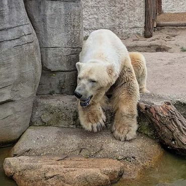 Nach Tagen und Wochen im Innengehege war Eisbärvater Kap wieder auf der Außenanlage. Wie es der Zufall wollte, war ich gestern vor Ort und konnte mir selber einen Eindruck machen von seinem Gesundheitszustand.