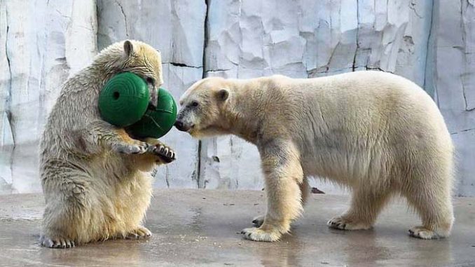 Jens visited the Karlsruhe Zoo on the 2nd of February and found Mika and Nuka playing with a brand new toy.