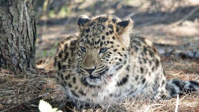 Amur leopard Kristen gave birth to two cubs Ali and Lewis.
