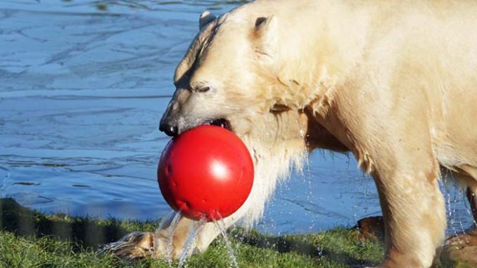Balls are great toys for polar bears, especially when combined with water, where they can swim and play with them endlessly. I wouldn’t be surprised if these intelligent and playful animals also play football with a ball.